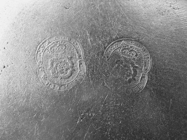 An excellent marked pewter plate by Jacob Whitmore of Middletown Connecticut, ca. 1758-1790, in the 7-7/8"