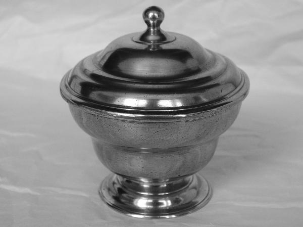 William Will Bellied Pewter Sugar Bowl, Philadelphia Pennsylvania, 1764-1798